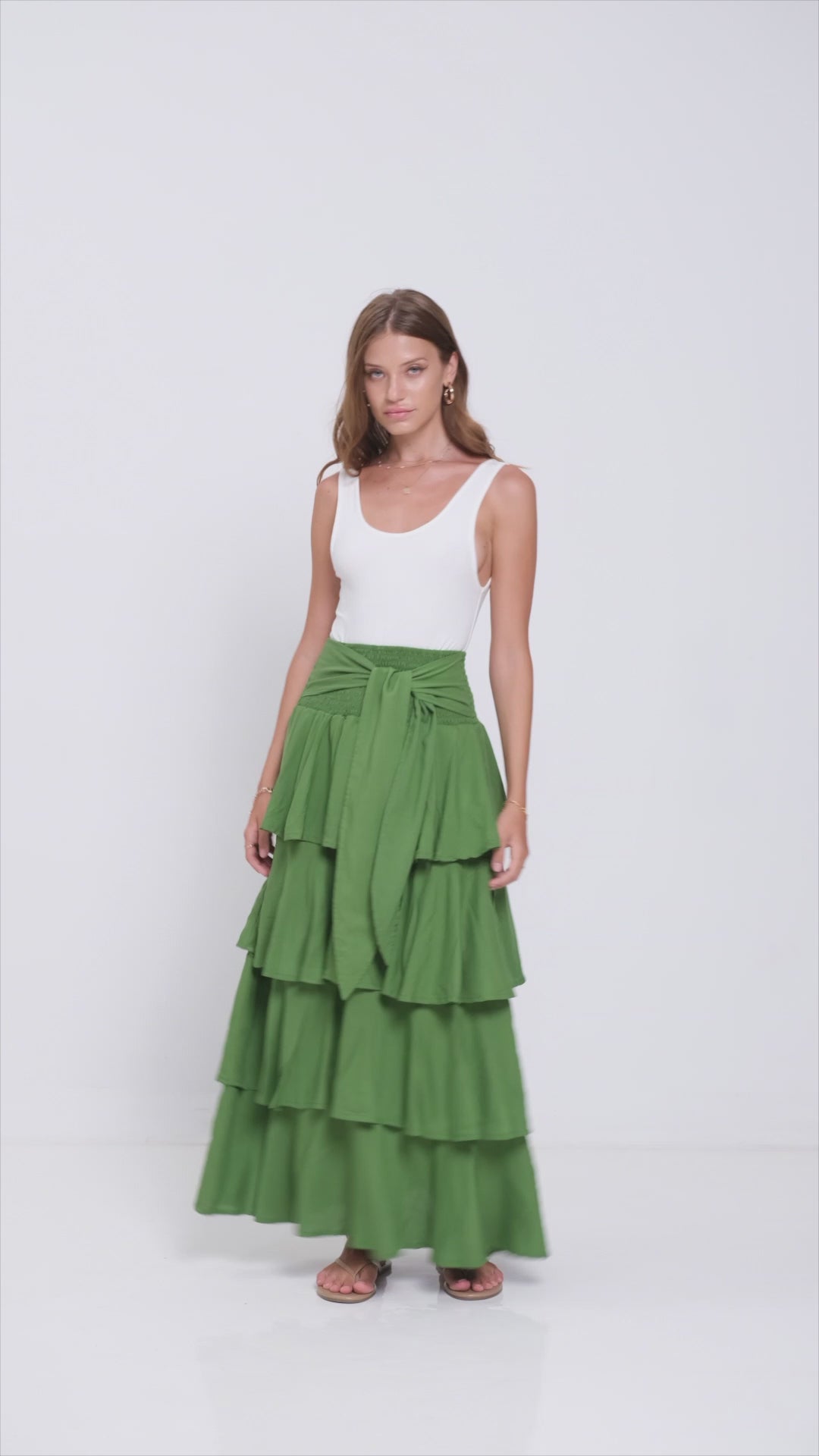 A breezy, romantic silhouette with graceful movement, this tiered maxi skirt is perfect for sun-filled escapes. It adds effortless style, from beach days to golden hour dinners.
